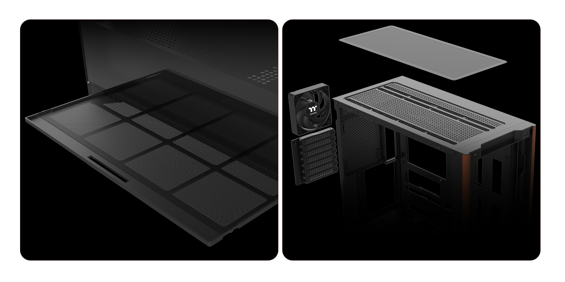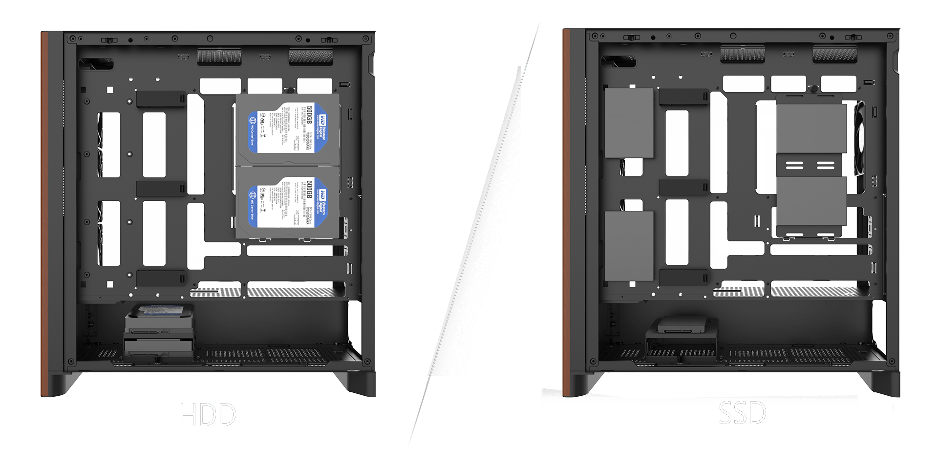 內建電源保護殼,提供玩家線材收納理線區域,保持外觀簡潔不雜亂,也提供更良好的通風的系統環境。