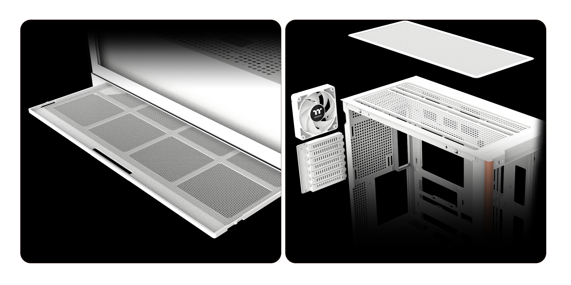 鋼煉 S370 WS Snow 中直立式機殼 雪白版配有一個網孔造型前面板,提供強大的氣流表現。