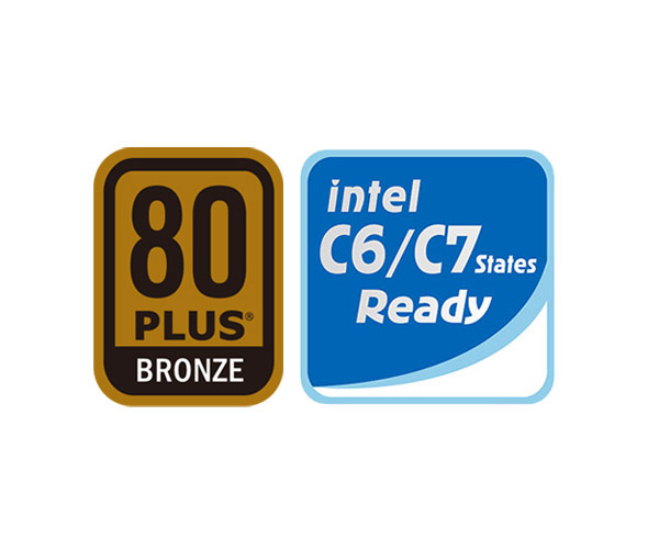 透過高效率電路設計來節省能源消耗,可達88%的轉換效率,並通過80 PLUS®金牌認證。此外也支援 Intel 最新處理器的C6/C7節能狀態,提供更穩定、高效且節能的解決方案。