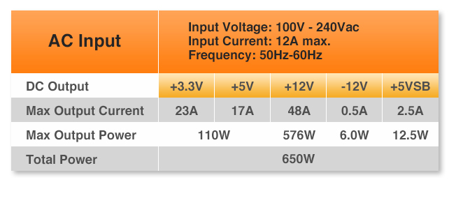 Max. Output Capacity | 650W |